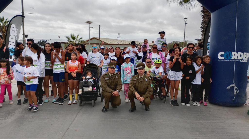 Cerca de 200 competidores se dieron cita a una nueva versión de la tradicional Corrida de Carabineros, en el marco de su 99 aniversario de la institución, actividad organizada por la Subcomisaría de Carabineros de Caldera, apoyada por Rotary Club Bahía Caldera, Cordep, la empresa CMP. La convocatoria se realizó en avenida Wheelwright donde los participantes los participantes de esta corrida llegaban para su respectiva inscripción en las diferentes categorías (Familiar, 5K y 10K), el clima en el puerto acompañó esta actividad deportiva, la organización obsequió una polera por la participación en este evento, además de medallas, galardones y trofeos para los primeros lugares. Matías Barraza, jefe de la Subcomisaría de Carabineros de Caldera, señaló “Estamos celebrando nuestro aniversario institucional junto a la comunidad de Caldera y deportistas que han venido desde Copiapó y Chañaral, estamos felices con esta actividad ya que llegó una buena cantidad de personas cercanas a los 200 deportistas en las distintas categorías desde niños hasta adultos mayores, la idea central es concentrar a las familias calderinas o de otras partes que han venido a participar con ambiente familiar y fomentar la vida sana y el deporte”.Carabineros en su aniversario 99 ha querido fomentar la actividad física, promover la vida sana, la recreación al aire libre y el deporte entre la comunidad, tomando conciencia de los beneficios de mantener hábitos de vida sana.Jaime Cárcamo, primer lugar en 5K general, expresó “Agradecer a todas las personas por las muestras de cariño debido a la experiencia que tuvimos en Boston (EE.UU), quedando como el primer chileno y sexto histórico en ese circuito, ahora estoy trabajando en esta corrida del aniversario de Carabineros donde obtuvimos este primer lugar muy buena la carrera con bastante participación muy contentos porque se reúne la familia”.La corrida tuvo un solo circuito comenzando por avenida Wheelwright, avenida Prat, avenida Canal Beagle y la avenida Carlos de Gavardo llegando al cruce de Calderilla, a igual de años anteriores participaron niños, niñas, damas, varones y personas adultos mayores, este tipo de actividades permite a la población acercarse a la institución.La corrida tuvo a ganadores en las categorías: Categoría Familiar niños, Categoría Juvenil Adultos Damas; Categoría 5K más de 40 años Damas y Varones y Categoría Todo Competidor.Francisca Mardones, participando con su hijo Lorenzo en categoría familiar, señaló “Una carrera muy entretenida y me parece muy bien que podamos participar con nuestros hijos y así desde muy pequeño les enseñamos sobre el deporte y de la vida saludable y esto es muy motivante para cualquier persona”.