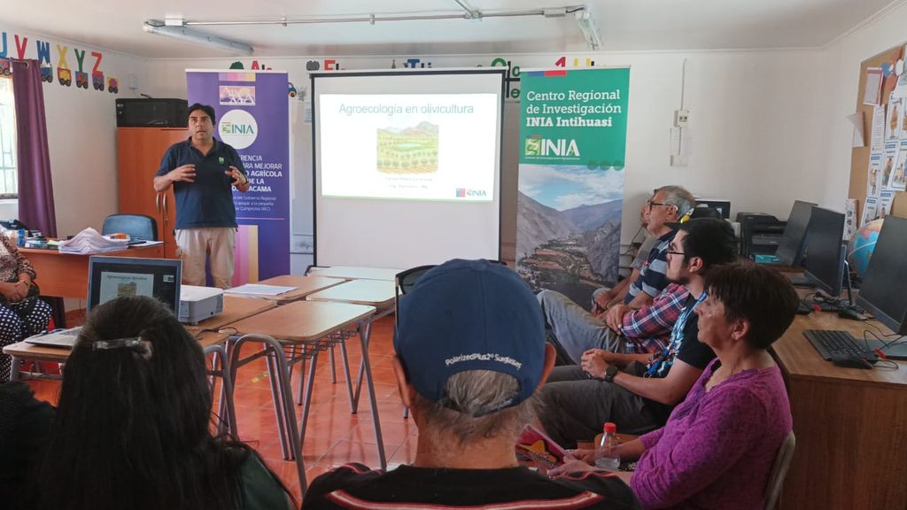 Un importante avance para la producción olivícola de la Región de Atacama se concretó en la localidad de El Totoral, comuna de Copiapó, donde se realizó un taller orientado a fortalecer capacidades en agroecología aplicada a la olivicultura. La actividad se desarrolló en el marco del Programa Transferencia Tecnológica para Mejorar la Rentabilidad Agrícola de la Agricultura Familiar Campesina (AFC) de la Región de Atacama, ejecutado por el Instituto de Investigaciones Agropecuarias, INIA Intihuasi, en la línea de trabajo dedicada a la recuperación de huertos que producen olivos con baja huella de carbono. El encuentro tuvo como propósito definir y socializar los conceptos fundamentales de las bases agroecológicas, mediante la metodología de Nichols y Altieri, que permite analizar prácticas del productor en ámbitos como biodiversidad, suelo, agua y reciclaje de nutrientes, permitiendo identificar fortalezas y brechas para planificar mejoras y avanzar hacia sistemas más sustentables. El profesional a cargo del taller, Carlos Alfaro, destacó que fue necesario adaptar la metodología al contexto particular del territorio. “La metodología original fue diseñada para policultivos diversos. En la localidad de Totoral (Comuna de Copiapó)predominan pequeños productores de aceitunas de mesa con olivares centenarios en un sistema árido, con suelos de reacción moderada a fuertemente salinos. Además, la producción está conectada a un humedal local y coexiste con fenómenos únicos como el Desierto Florido, elementos que deben considerarse explícitamente en cualquier diagnóstico”, explicó. A partir de un diagnóstico territorial previo, se evidenció que muchas prácticas agroecológicas ya se encuentran presentes en los sistemas productivos locales, como la cobertura vegetal, el manejo de la biodiversidad, el uso eficiente del agua y la incorporación de saberes tradicionales (como cuales?), aunque no siempre son identificadas por los propios olivicultores. En esa línea, Alfaro comenta que la adaptación metodológica permitió reorientar el diagnóstico, “apuntamos a reconocer y valorar la variedad Sevillana como reservorio genético y patrimonio cultural, incorporando además variables edafoclimáticas como la salinidad del suelo y las respuestas fisiológicas del olivo, sin proponer especies no adaptadas”, precisó. Entre los hallazgos más relevantes, los agricultores valoraron el entorno árido y la interacción positiva con el humedal del oasis. “Reconocieron que el humedal y fenómenos como el Desierto Florido generan sinergias ecosistémicas importantes, como el aumento temporal de polinizadores que benefician al olivar”, señaló el investigador. Este reconocimiento colectivo abre la puerta a intervenciones que integren conservación y producción, reforzando la resiliencia local. Respecto a los aprendizajes, Alfaro resaltó la dimensión cultural del proceso. “El principal aprendizaje fue la reafirmación de su tradición y modos de vida vinculados al olivo. Mostraron orgullo por la variedad Sevillana y por la calidad de sus aceitunas. Además, asumieron la protección del paisaje y del humedal como parte de la gestión productiva”, destacó. El profesional señaló que esta primera intervención permitirá enfocar el trabajo en las áreas más débiles, que, por las características del territorio y del desarrollo tecnológico de la industrialización de aceitunas son la reducción de la alternancia productiva (“añerismo”), basado en manejo agronómico de hueros como mejorar la eficiencia de riego, rejuvenecimiento productivo de árboles (poda), uso eficiente de residuos de poda, cosecha oportuna, y en la industrialización la uniformidad de la calidad del producto obtenido. En este proceso, es clave un manejo sustentable del agro sistema local, mantener y fortalecer condiciones de equilibrio biológico de huertos, lo cual reducirá ingreso de plagas y enfermedades y control en equilibrio de las ya existentes. La actividad es parte del proyecto de Agricultura Familiar Campesina, financiado con fondos FNDR Atacama y que realiza el Instituto de Investigaciones Agropecuarias en la región de Atacama, contó con la participación de 20 olivicultores, y colaboración del equipo técnico Prodesal Copiapó. En conjunto, generaron un espacio de aprendizaje colaborativo y fortalecimiento de capacidades, instancia clave para avanzar hacia una producción olivícola más sustentable y con identidad local. En esta línea, el equipo proyecta continuar con intervenciones en terreno, acompañar el trabajo en dos parcelas demostrativas y consolidar una línea base que permitirá fortalecer condiciones productivas de olivicultores locales.