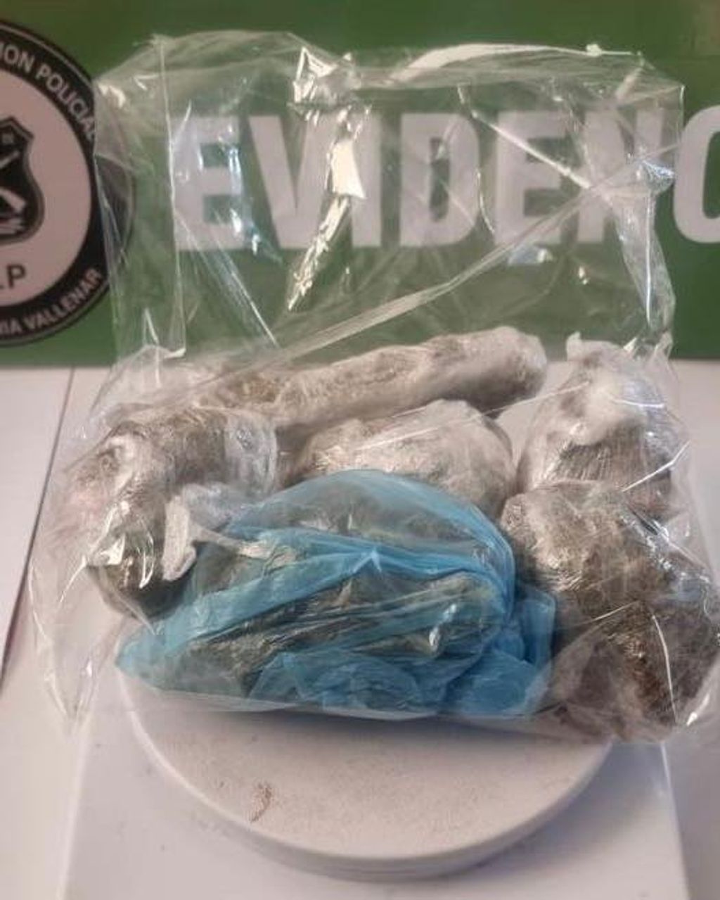 Además en el proceso de fiscalización el personal de Carabineros detectó un fuerte olor a marihuana al interior del vehículo y el copiloto al descender dejó en el asiento delantero un banano de color negro, el cual en su interior tenía cinco envoltorios de sustancia verdosa, característica a la marihuana y una bolsa de nylon con sustancia color blanco característica al clorhidrato de cocaína. Mientras que el conductor mantenía en el habitáculo delantero izquierdo un bolso negro marca en cuyo interior tenía 13 envoltorios de nylon contenedores de sustancia de color verde y 7 bolsas dosificadoras y contenedoras de sustancia blanca.